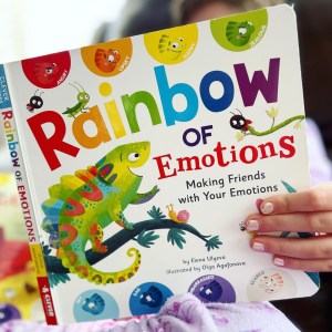 Hello, friends! Our books today are Rainbow of Emotions, Big Emotions, and Facing Fears, written by Elena Ulyeva and illustrated by Olga Agafonova (Olka Illustration), the first three books in the Clever Emotions board book series.