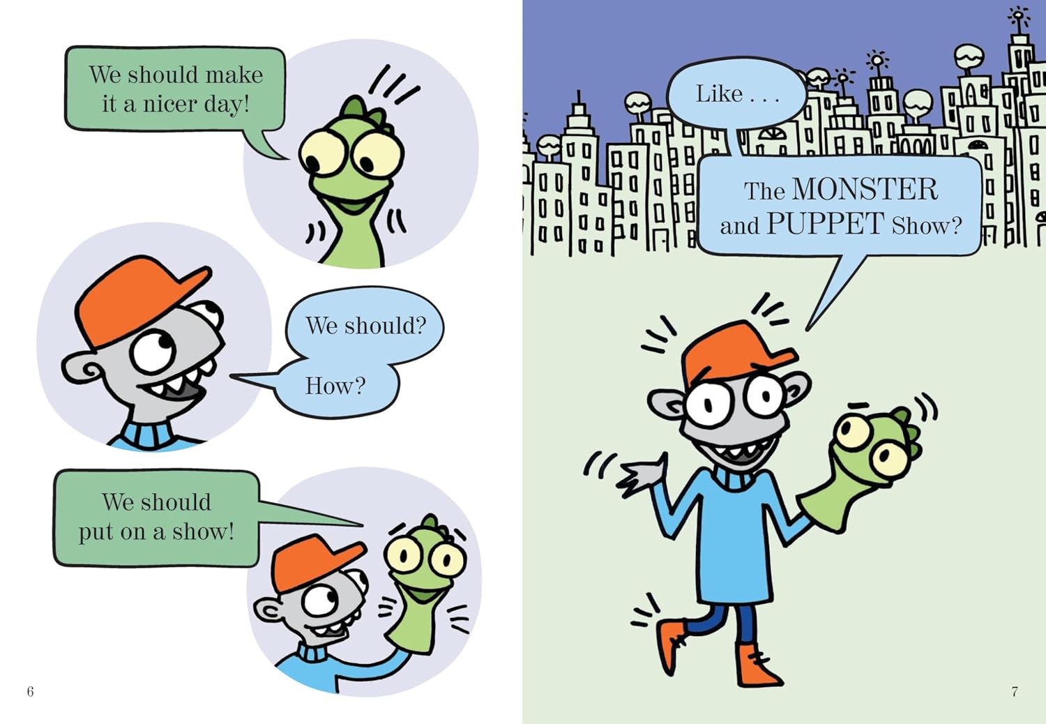 Welcome to The Baby Bookworm, Kate! Everyone loves a puppet show! While readers wait for the book’s release in February, can you give us a brief introduction to the characters of The Monster and Puppet Show!, and how their story begins?