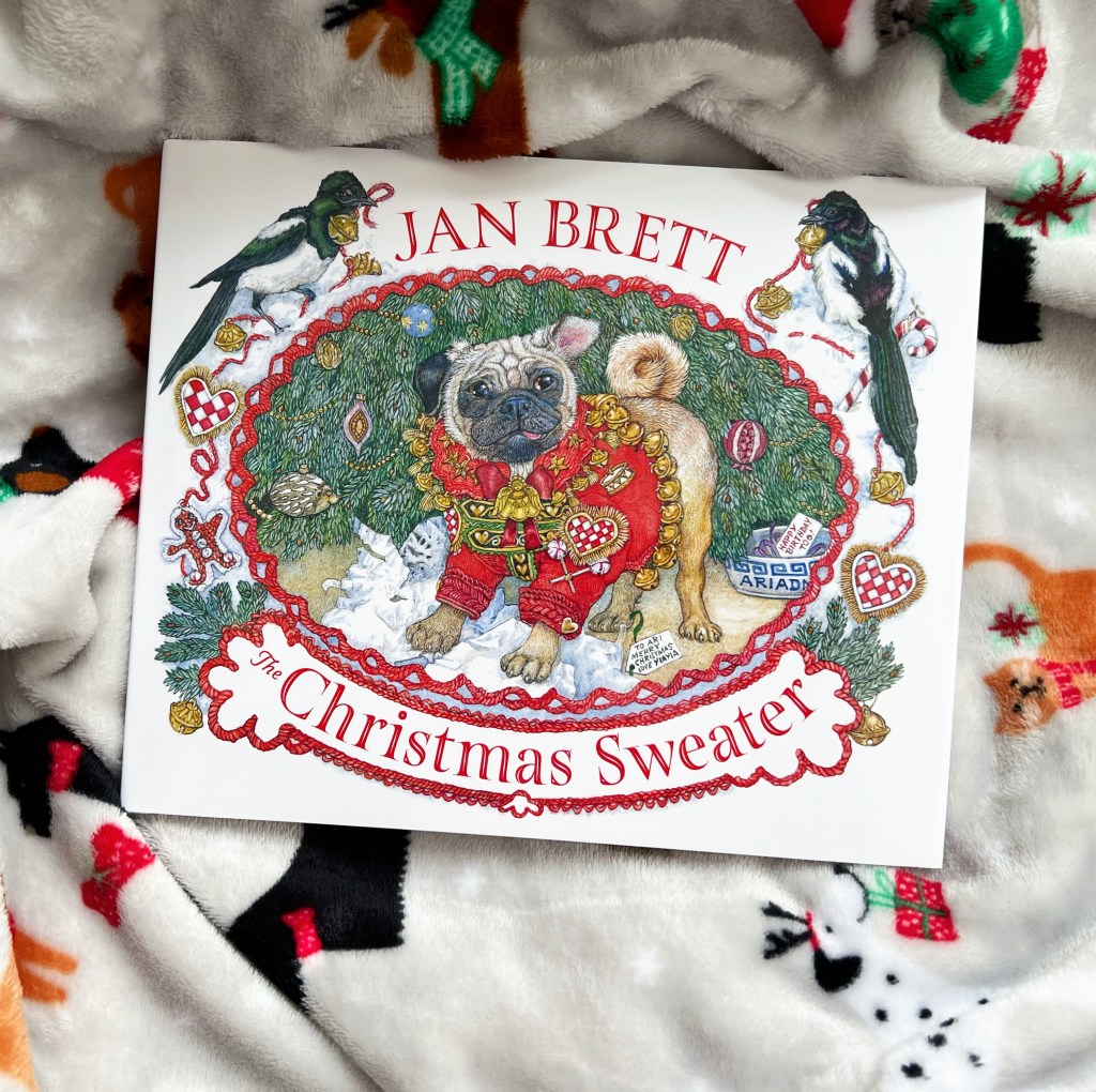 Beloved children’s author-illustrator Jan Brett is back with a brand new wintry tale, this time starring an adorable pug named Ari. Told in her signature triptych-style illustrations, readers follow Ari and her human Theo on a snowy adventure based loosely on the tale of Theseus, Ariadne, and the labyrinth, all centered around a rather gaudy yet unexpectedly helpful Christmas sweater. It’s a fun tale that dog lovers and mythology buffs will appreciate, and we enjoyed it!