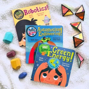 Can you believe that Ruth Spiro’s iconic Baby Loves Science board book series is turning 10 years old this year? Our family practically grew up with this awesome collection (our first was Baby Loves Quarks! back in 2016), which now boasts 26 titles and over 1 million copies sold.