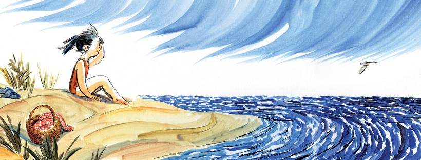 Hello, friends! Our book today is They Say Blue by Jillian Tamaki, a thought-provoking meditation on the colors of life. They say that the sky is blue, and that the sea is too, thinks the little girl who serves as narrator. However, she muses, when she holds the water in her hand, it becomes as … Continue reading They Say Blue (Jillian Tamaki)