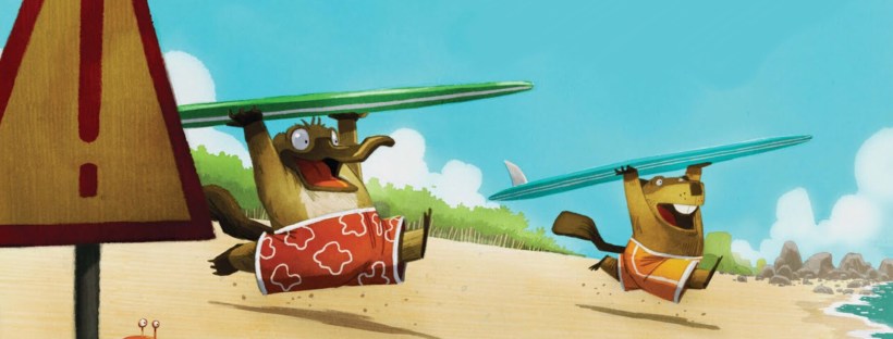 Hello, friends! Our book today is Dude!, written by Aaron Reynolds and illustrated by Dan Santat, a delightful look at the many emotions that the titular word can express. Using only one word of dialogue, the story follows two friends - a beaver and a platypus - as they meet up at the beach for … Continue reading Dude! (Aaron Reynolds & Dan Santat)